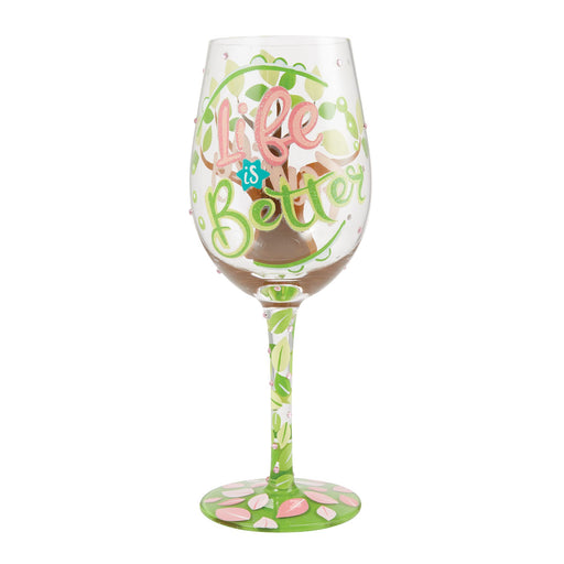 This 15 oz wine glass by Lolita celebrates Life's simple pleasures. An array of hand painted flowers and bedazzled gems create a loving scene of fr...
