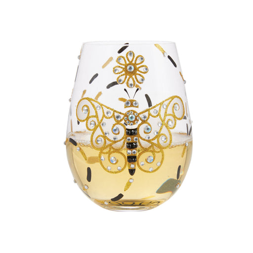 This gorgeous stemless wine glass from Lolita features a hand-painted dragonfly in black and gold. With inlaid crystal patterning, the stylish crea...