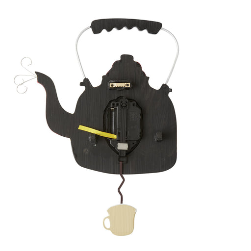 This charming wall clock is in the shape of a floral teakettle. With flower clock hands a a ticking cup of tea pendulum, this unique clock delights...