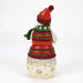 This Christmas at the Lodge Jim Shore snowman is dressed in an intricate red and green tunic and holds a little log cabin. With a knit cap, rosy cheeks, and a joyful smile, he glows with rosemaling and snowflakes, bringing festive warmth and cozy cabin v