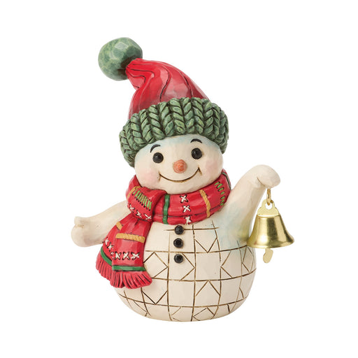IN STOCK AND AVAILABLE ON 08/15/2026. This miniature snowman is bundled up in cozy knitted warmth as he holds a real jingling bell. Jim Shore's sig...
