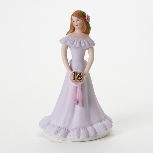 An adorable brunette girl stands wearing a lavender dress with a flower accessory in her hair to celebrate her Sweet Sixteenth birthday. In her han...