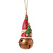 This dashing Jim Shore ornament features a jingle bell topped with a charming Santa gnome, holding a tiny decorated Christmas tree. His festive hat, adorned with intricate rosemaling, adds a playful touch to this delightful holiday keepsake.