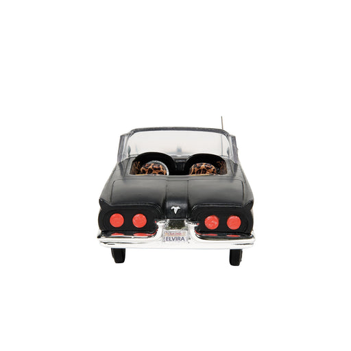 Elvira always rides in style in her customized "Macabre Mobile" - complete with leopard print upholstery, spider web grill and personalized license...