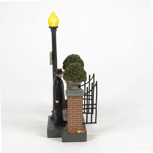 Embarking on her 10th life, Kit Ekat ponders momentarily atop her tombstone before pouncing off to eternity. Introduced October 2023 Village Fig...