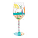 This wine glass from Lolita brings bungalow vibes with every sip! Hand-painted with a cozy hammock, surfboard, sparkling rhinestones, seashells, and a cheerful beach scene, it's a sparkling tribute to sun-soaked days for who dream of the shore.- Introduced January 2026