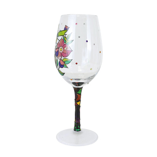 IN STOCK AND AVAILABLE ON 03/15/2026. Inspired by the elegance of stained glass, this Lolita wine glass showcases a radiant hummingbird surrounded ...