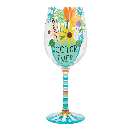 IN STOCK AND AVAILABLE ON 03/15/2026. Celebrate the best doctor ever with this Lolita wine glass, featuring a charming basket of colorful flowers a...