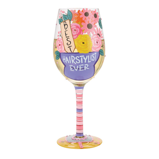 IN STOCK AND AVAILABLE ON 03/15/2026. Toast your favorite hairstylist with this Lolita wine glass, adorned with hand-painted combs, scissors, and a...