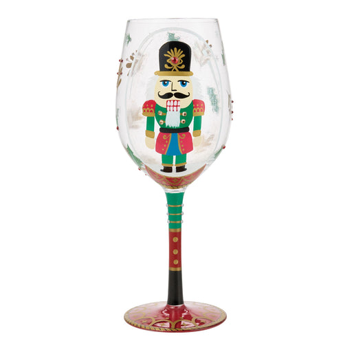 IN STOCK AND AVAILABLE ON 07/15/2026. Celebrate the season with this Lolita wine glass, featuring a cheerful nutcracker in his soldier uniform surr...