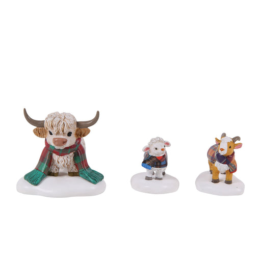 IN STOCK AND AVAILABLE ON 07/15/2026. Festive fun from the Highlands! This trio of animals cozy up in plaid scarves, bringing charm and cheer to yo...